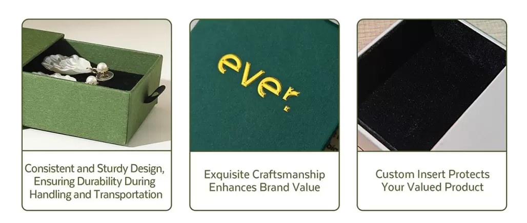 عند اختيار صناديق الأدراج الصلبة المصممة خصيصًا لمنتجاتك، ضع في اعتبارك العوامل التالية: