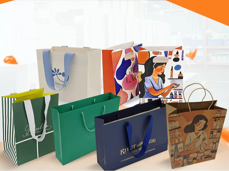 عملية الطباعة: تُستخدم معدات طباعة عالية الدقة لضمان طباعة النمط والنص بوضوح وألوان زاهية. وفقًا لمتطلبات التصميم، يمكن استخدام عمليات طباعة خاصة، مثل الختم الساخن، والفضة الساخنة، والطباعة بالأشعة فوق البنفسجية، والنقش البارز، وغيرها، لتعزيز المظهر ثلاثي الأبعاد ولمعان أكياس التسوق الورقية. على سبيل المثال، يمكن طبع شعار العلامة التجارية بالختم الساخن لجعله أكثر جاذبية وفخامة.